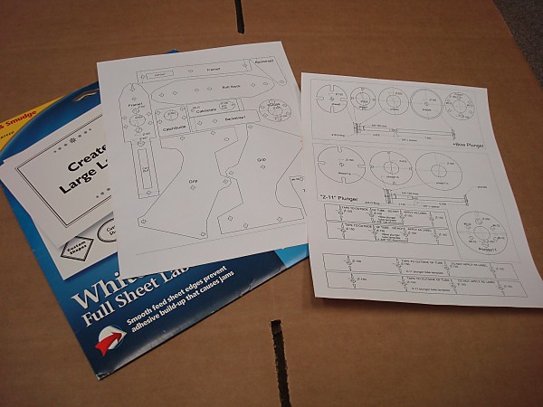 Print them on full sheet label paper. The included legend will tell you what size holes need to be drilled where. Most of which are labeled with the bit size or tapping requirements. Any unspecified holes should be drilled for clearance of a #6-32 screw (typically a #23 or 5/32).
