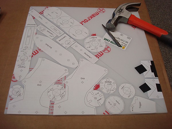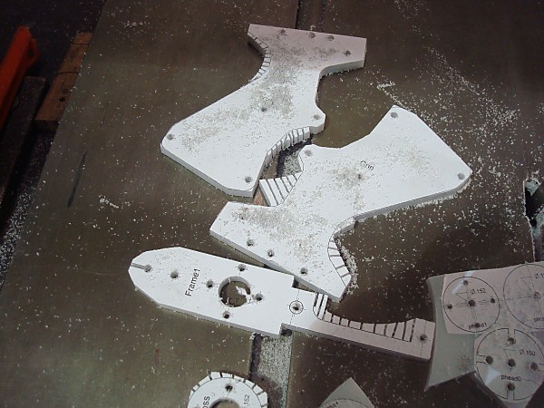 | Using a Scroll Saw or a Band Saw coarsely cut all of the parts free from the plastic sheet.