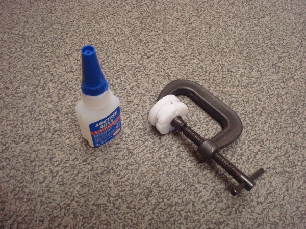 Use Super Glue and a C-Clamp to glue together the three plunger head parts that match your chosen plunger type. Make sure to line up the center hole on all three pieces as well as the "check valve" holes.