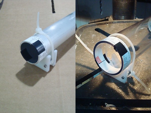 Use a few Zip Ties to clamp the "V-Block" onto the end of the plunger tube near the template.